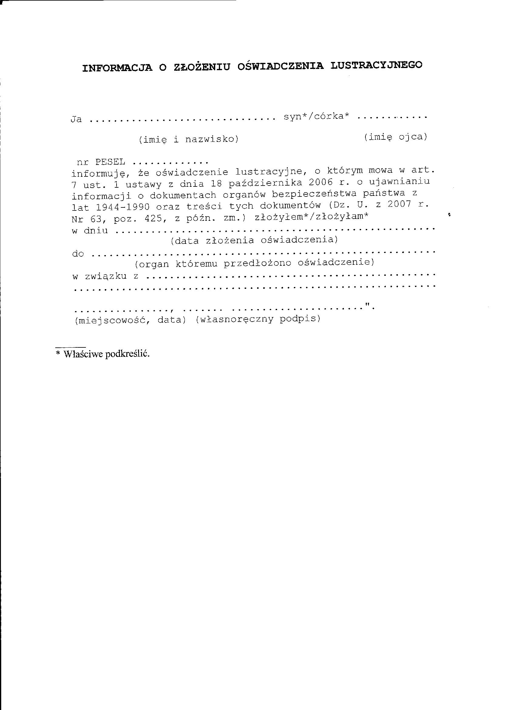 informacja o złożeniu oświadczenia lustracyjnego